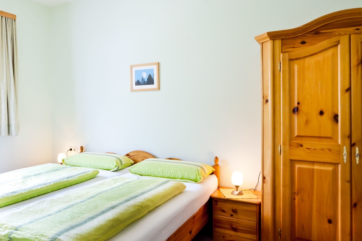 Die Ferienwohnungen bestehen aus Schlafzimmer, Wohn/-Schlafraum mit Küchenzeile und Dusche / WC. Die Schlafzimmer sind für zwei Personen ausgestattet.