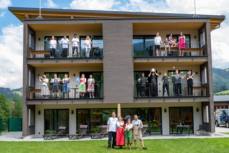 In den komfortablen 4*-Wohnungen des Bauernhofs fühlen sich Groß und Klein wohl: zwischen Wiesen und Wäldern in ruhiger Lage entspannen, sich in der Sauna regenerieren, im Badeteich planschen u.v.m.zum Bauernhof