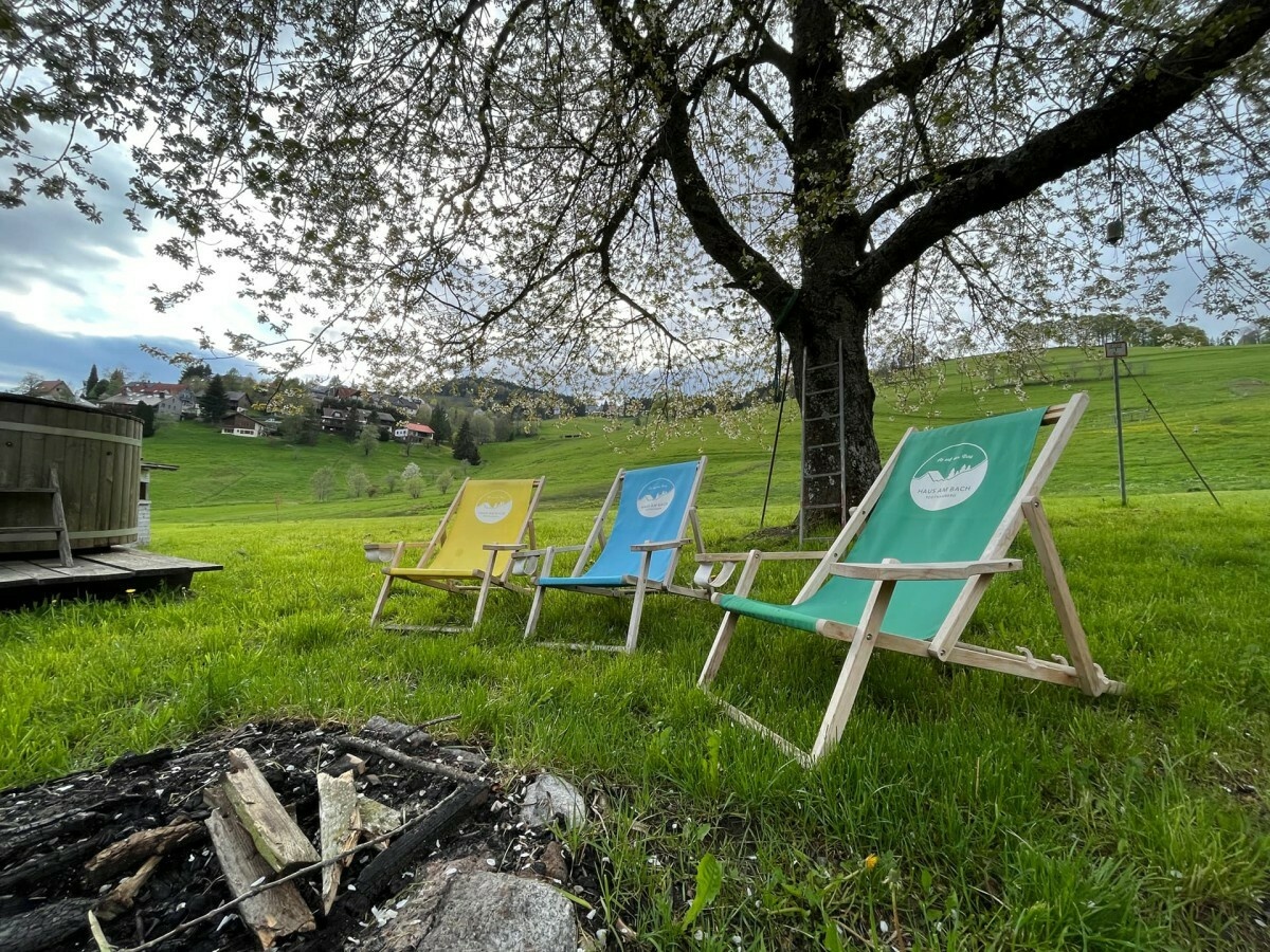 Im Außenbereich können Gäste jederzeit unsere weitläufige Wiese, die Terrasse oder die Feuer- und Grillstelle am Bach nutzen. Liegestühle und Gartenmöbel stehen bereit. Ein Parkplatz steht direkt am Haus zur Verfügung, ebenso Unterstellmöglichkeiten für Fahrräder oder Ski. Eine Ladestation für E-Autos ist vorhanden (kostenpflichtig), E-Bikes können selbstverständlich geladen werden.