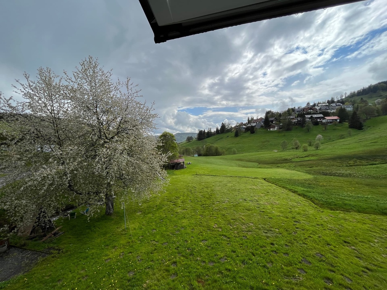 Ab auf den Berg! Naturnahe Unterkunft für Urlaub, Auszeit, Freizeit im sonnigen Hochtal im Südschwarzwald. Freistehend, in ruhiger Lage, auf 1.020 m Höhe mit Weitblick und viel Platz direkt am Bach.zur Unterkunft