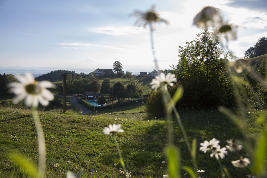 Ab auf den Berg! Naturnahe Unterkunft für Urlaub, Auszeit, Freizeit im sonnigen Hochtal im Südschwarzwald. Freistehend, in ruhiger Lage, auf 1.020 m Höhe mit Weitblick und viel Platz direkt am Bach.zur Unterkunft
