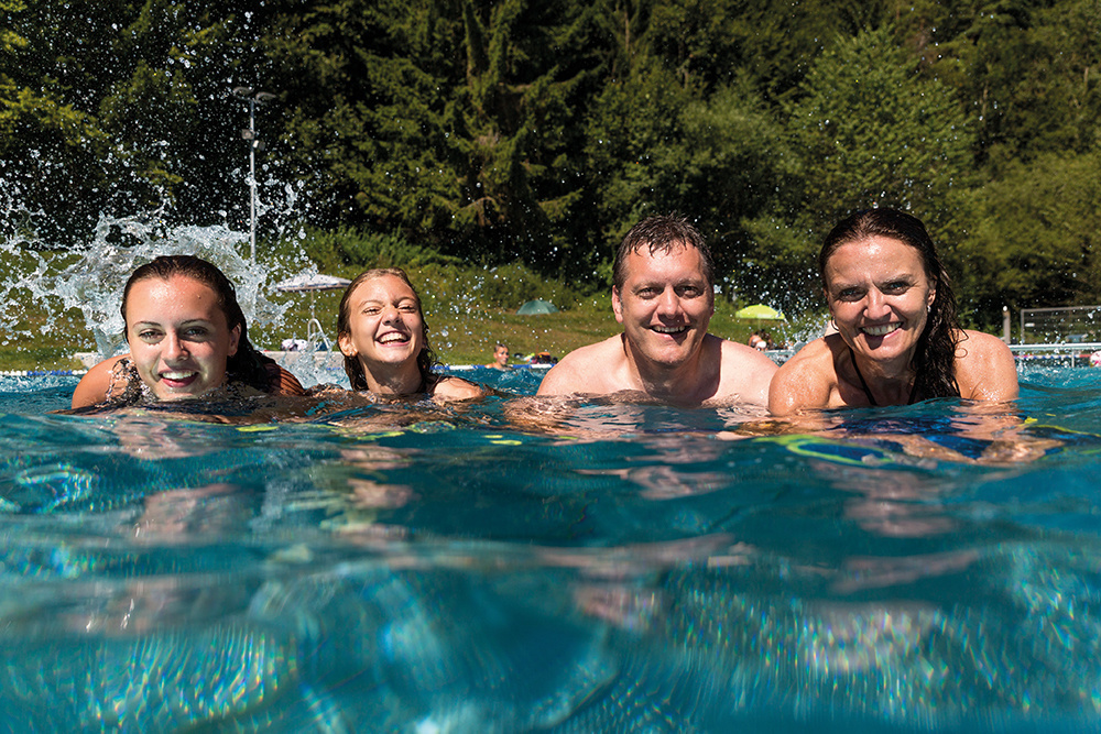 Genießen Sie die einmalige Aussicht am Fuße des Eichbergs und lassen Sie Ihren Blick über die Stadt schweifen. Wenn Sie dazu kommen - denn neben den großzügig gestalteten Liegewiesen, auf denen Sie wahlweise in der Sonne oder unter einem der zahlreichen Schatten spendenden Bäume entspannen können, zieht Sie das Bad mit vielen erfrischenden Attraktionen rund um das spritzige Nass magisch an: So verwöhnt Sie das Schwimmerbecken mit Massagedüsen, die Springer toben sich in einem abgetrennten Becken aus und im Nichtschwimmerbecken verbreiten eine Halbschalenrutsche mit 35 Meter Länge, eine Breitwellenrutsche sowie ein Wasserpilz abwechslungsreich nassen Spaß und gute Laune! Der Kiosk versorgt Sie mit allem, was Ihnen den Besuch im Schwimmbad an einem langen heißen Sommertag versüßt. Spaß, Erfrischung und Entspannung werden im Panoramabad Blumberg also groß geschrieben!