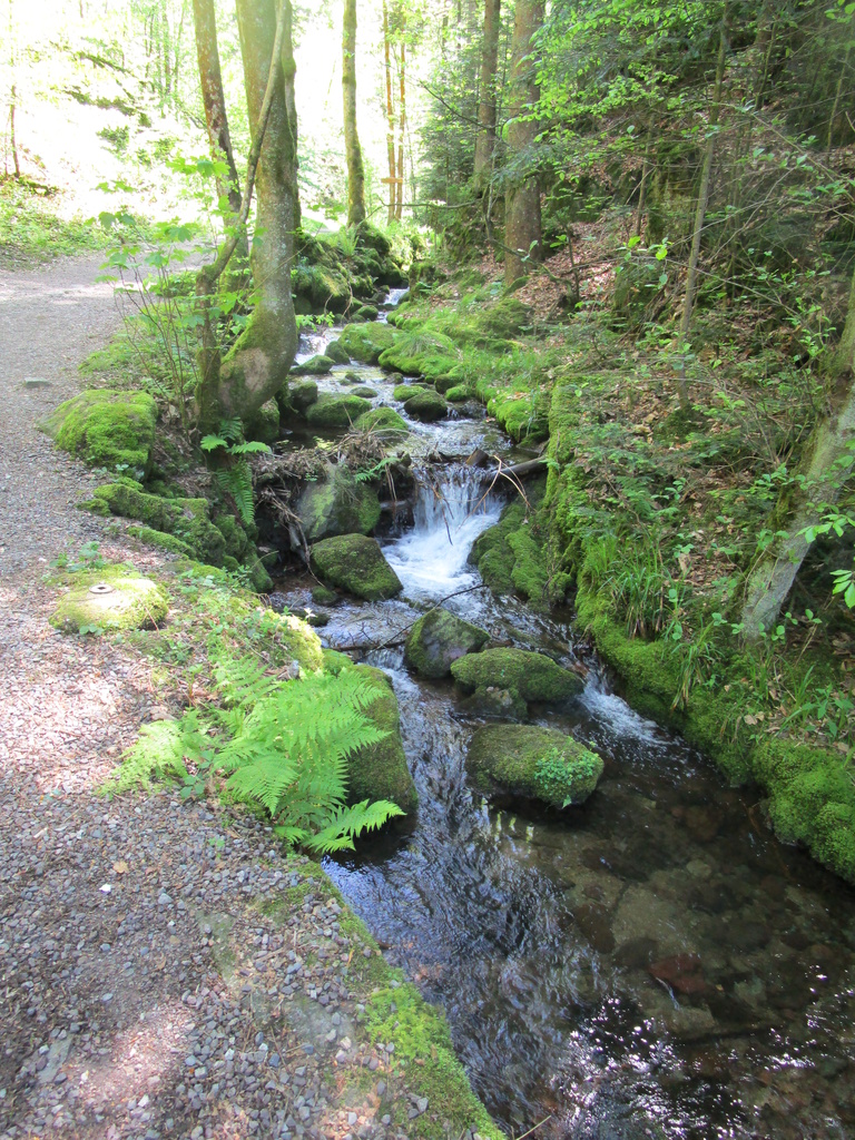 Edelfrauengrab, einer natürlichen Auskolkungshöhle. Der Gottschlägbach bildet in diesem Abschnitt mehrere, bis zu acht Meter hohe, Wasserfälle und überwindet auf kurzer Strecke einen Höhenunterschied von mehr als 100 m. Der Weg führt den Bach entlang bis zum Romantischen Brückle.